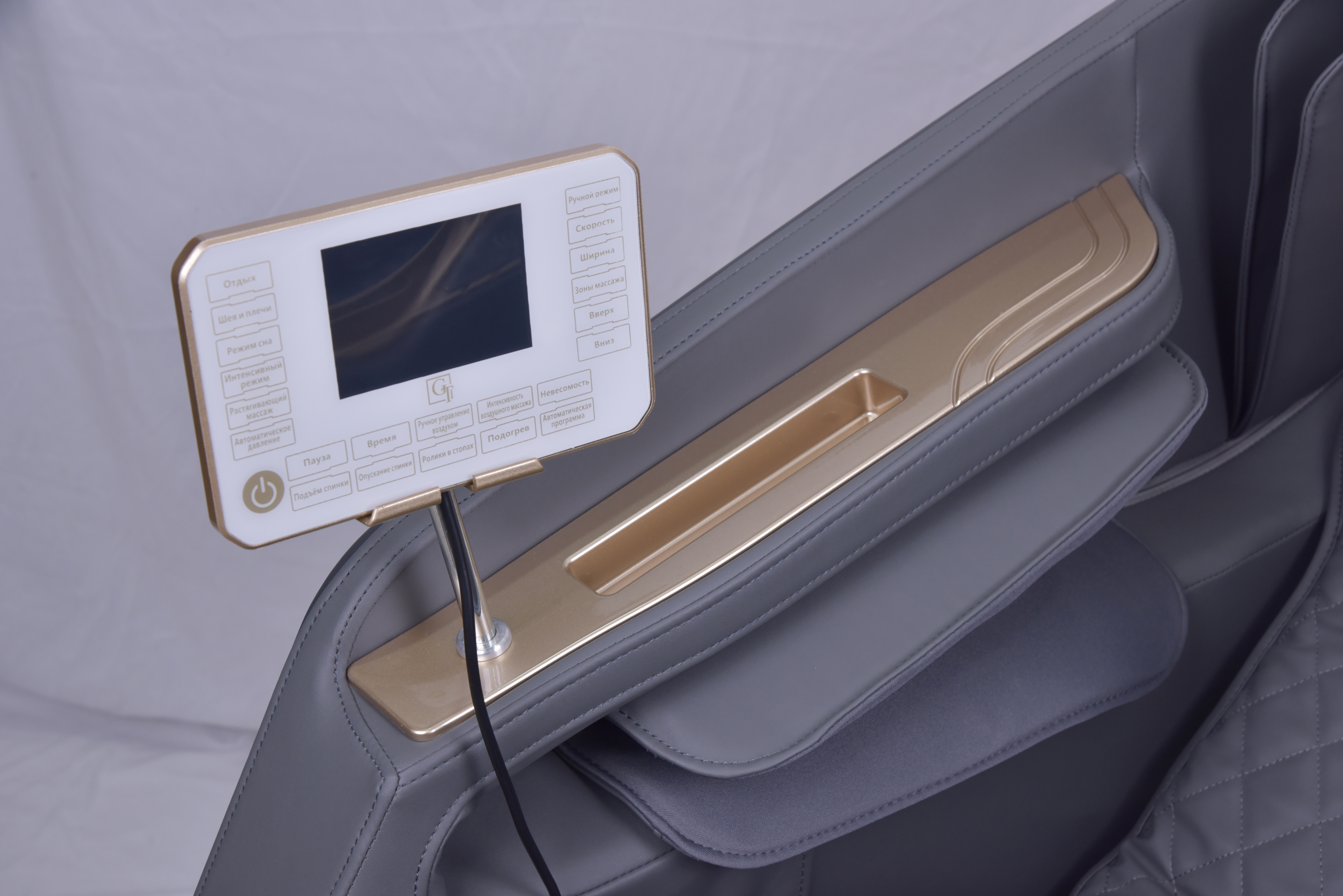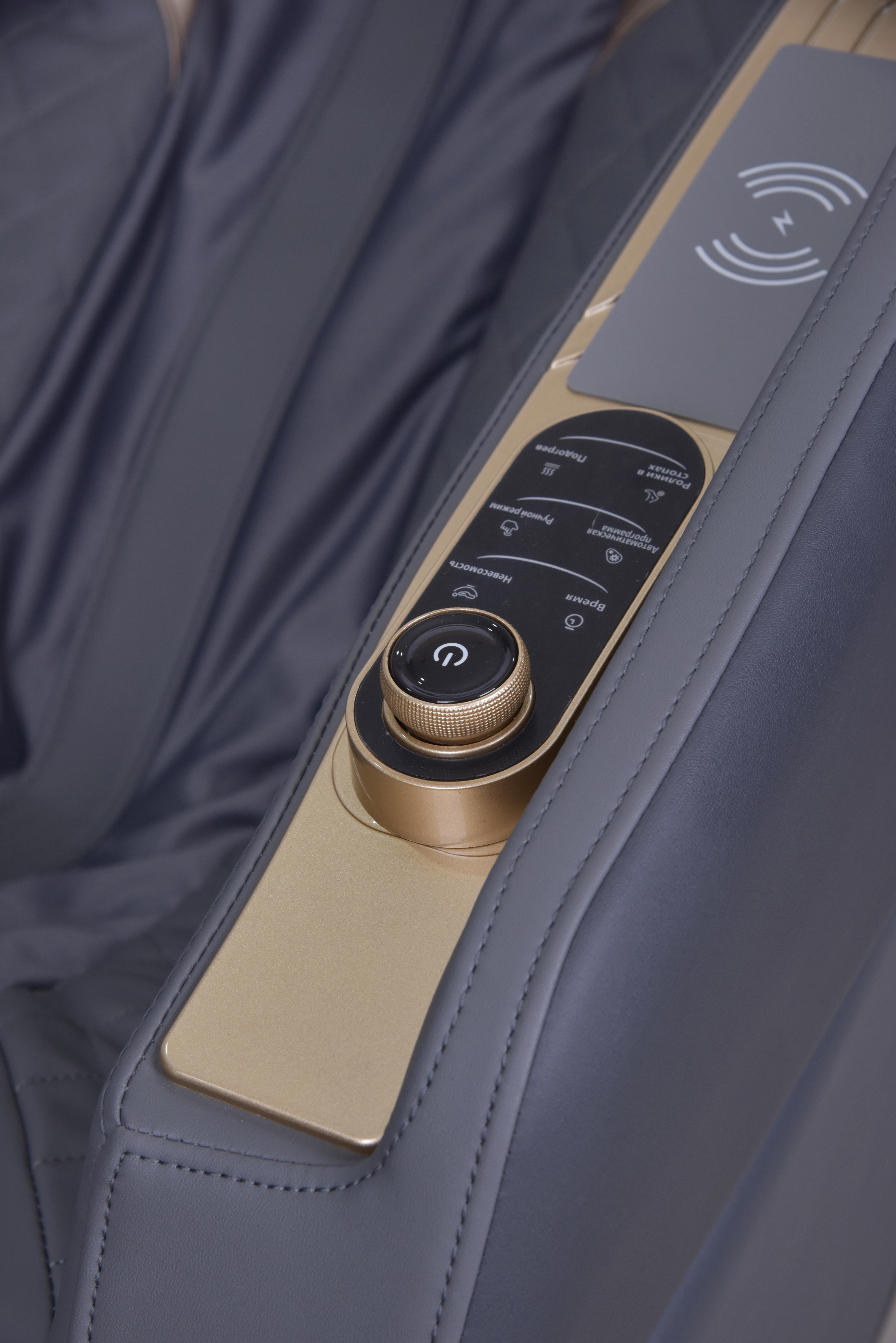Запуск массажного кресла осуществляется одним нажатием кнопки, а система автоматического определения положения плеч помогает адаптировать массаж под индивидуальные особенности пользователя. Подлокотники оборудованы кнопками быстрого доступа, что упрощает управление основными функциями и делает использование кресла максимально комфортным.