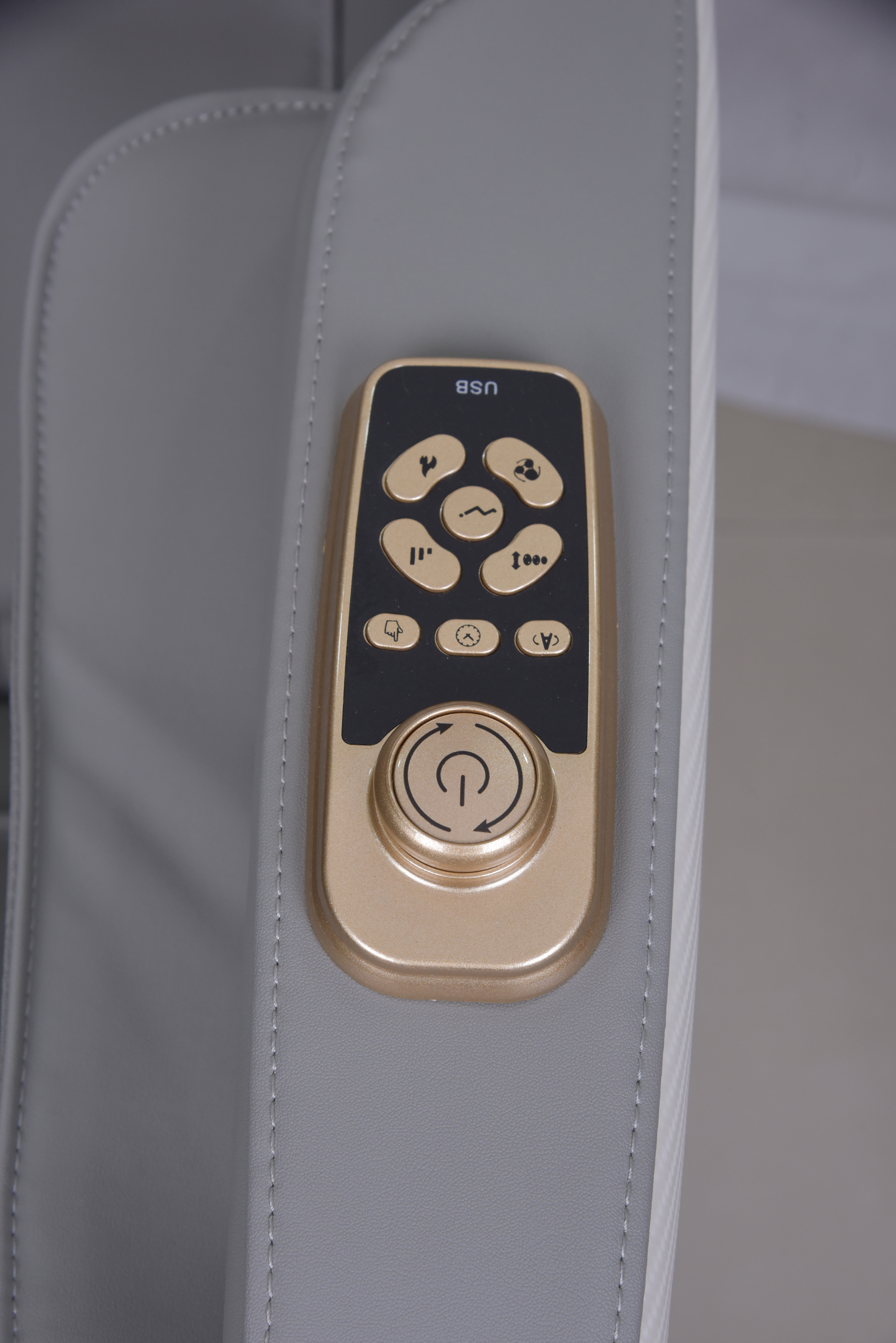 Запуск массажного кресла осуществляется одним нажатием кнопки, а центральная панель управления с горячими клавишами обеспечивает легкий доступ ко всем функциям. Подлокотники кресла также оснащены кнопками быстрого доступа, что делает управление еще более удобным и интуитивно понятным.