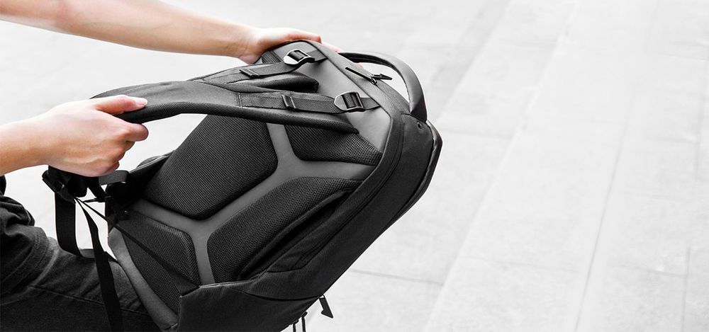 Geek Backpack – один из самых необычных рюкзаков, ведь он смотрится как элемент экипировки штурмовика или повседневная вещь жителя мегаполиса будущего. Необычная панель – не только декоративный элемент. За счет высокой прочности она убережет содержимое от повреждений при падении рюкзака, а влагостойкое покрытие защитит вещи от дождя, поэтому за сохранность ноутбука и других девайсов можно не переживать – они в надежных руках, а точнее лямках.