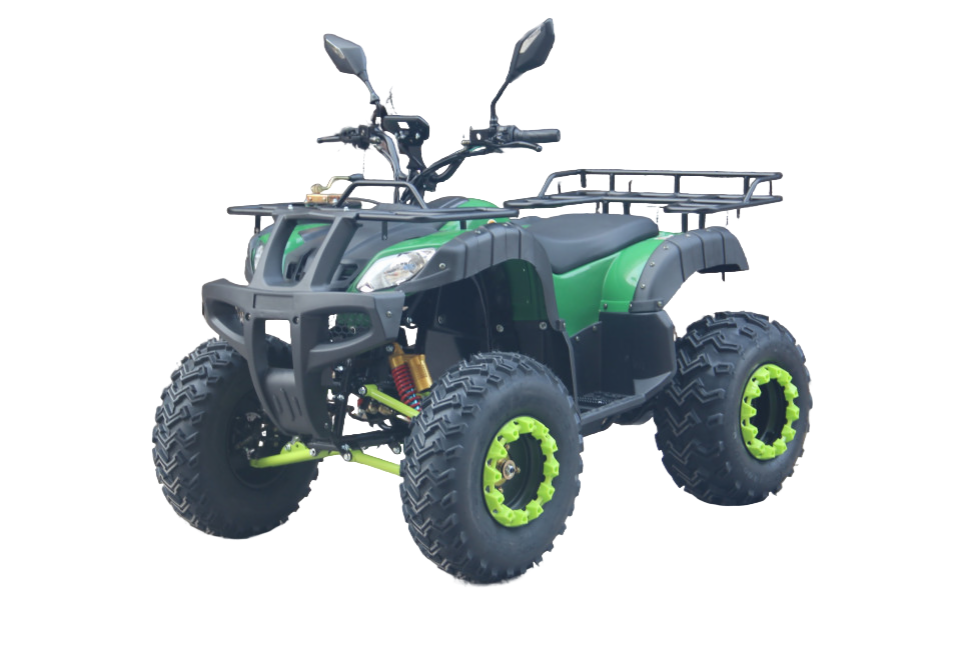 Квадроцикл оборудован дифференциальной передачей на заднюю ось, что обеспечивает отличную маневренность и устойчивость. Дисковые гидравлические тормоза на передних и задних колесах обеспечивают надежное торможение, что особенно важно при движении по сложным маршрутам.