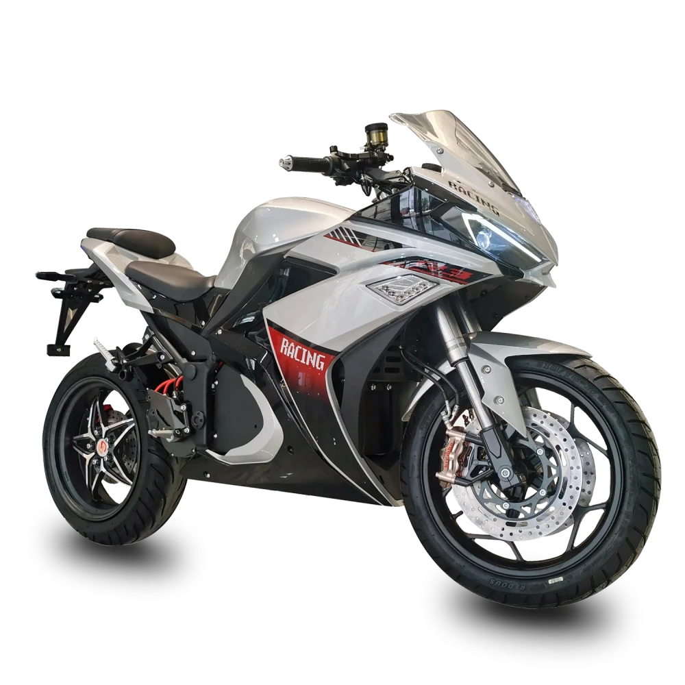 Электромотоцикл ECO Yamaha R3 PRO Sport оснащен высокоэффективным двигателем мощностью 3900 Вт, который обеспечивает стремительный разгон и позволяет достигать максимальной скорости 135 км/ч. Мгновенная подача крутящего момента характерна для электродвигателей и дает преимущество при обгонах и старте с места. Спортивный характер мотоцикла проявляется в уверенном поведении на высоких скоростях.