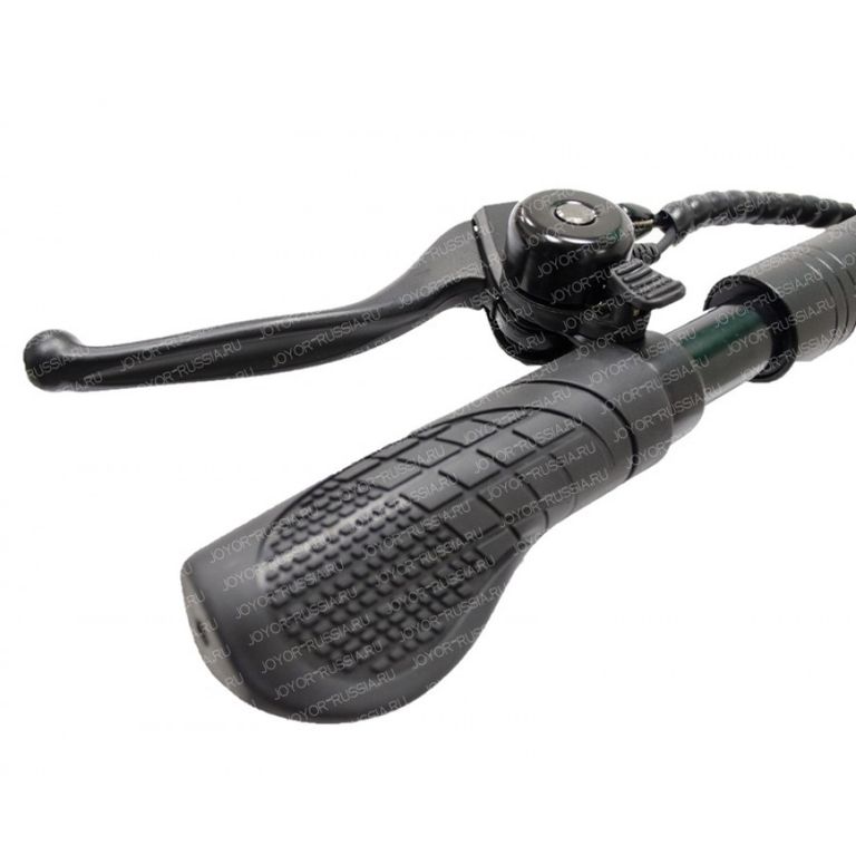 - Электросамокат Джойор Ф1 также оснащен практичной подножкой и звонком, встроенным в тормозной рычаг.