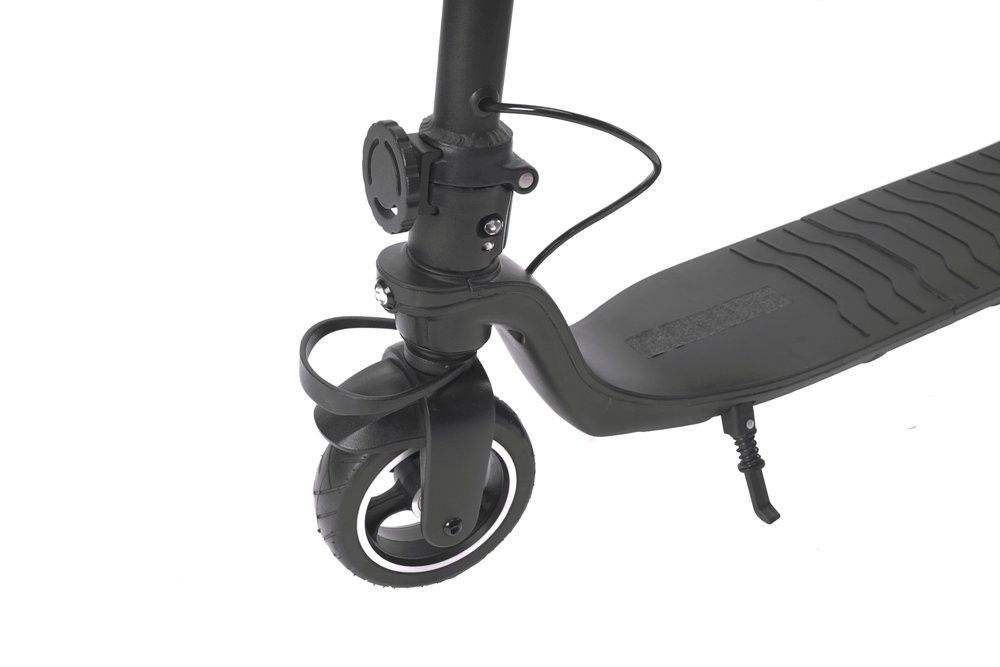 - Компактные колеса диаметром 6 дюймов из алюминиевого сплава с безвоздушными резиновыми покрышками позволяют безопасно преодолевать неровности, ямы и препятствия на дороге и не переживать о проколах колес.
