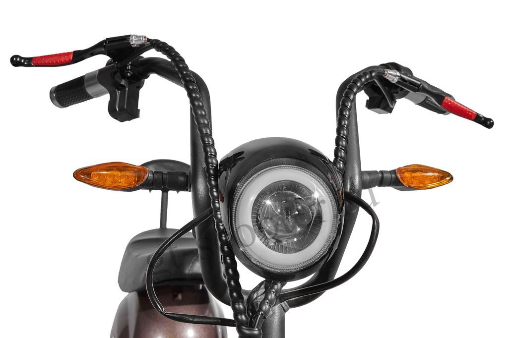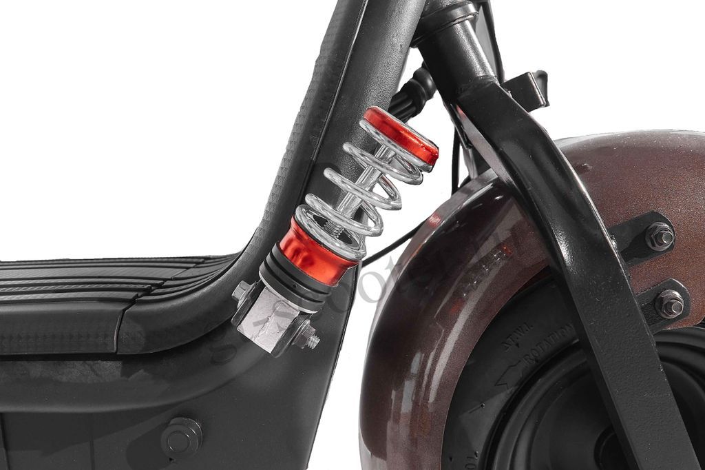 Электроскутер Citycoco GT X4 — электроскутер с двойным сиденьем. Модель создана для комфортного передвижения в городских условиях. Максимальная скорость достигает 35 км/ч, а пробег на одном заряде составляет до 30км. Для безопасной остановки в электроскутер Citycoco встроена тормозная система. Она состоит из дискового и гидравлического тормоза. Смягчают тряску от неровных дорог надувные колеса и амортизаторы. Максимальная нагрузка на модель — 120 килограммов.