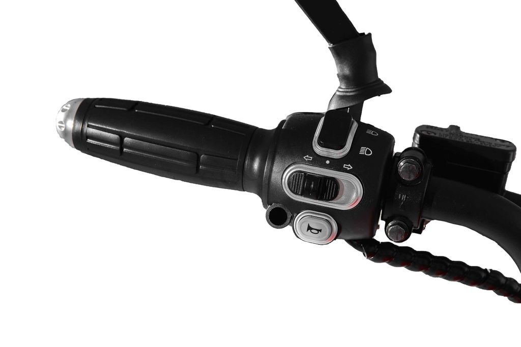 - Электроскутер оснащен дисковыми тормозами, мощной LED фарой, поворотниками, стоп сигналами, информационным табло-спидометром и многим другим.