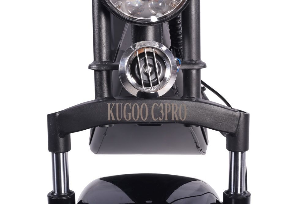 Citycoco Kugoo C3 Pro оборудован большим сиденьем и амортизаторами как спереди, так и сзади, что обеспечивает комфортную езду даже по неровным поверхностям. Дисплей на руле показывает основную информацию о скорости и уровне заряда батареи, что делает управление скутером более удобным.