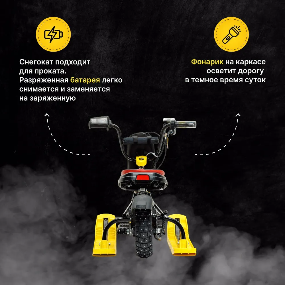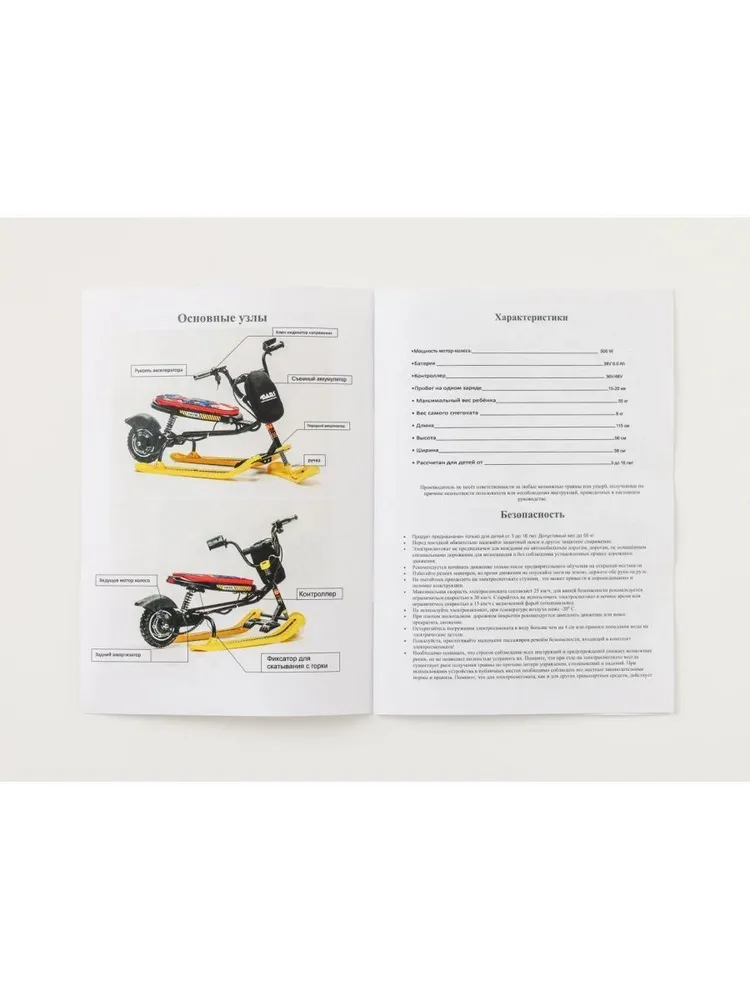 - Универсальность и Прочность: Мощность достаточна для двоих детей или небольшого взрослого. Снегокат легко разгоняется, обеспечивая захватывающий опыт езды.