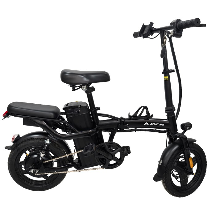 Электровелосипед Armelona AR-18 оборудован складной рамой, которая позволяет быстро уменьшить размеры устройства для удобного хранения в малогабаритных квартирах или перевозки в общественном транспорте. В рабочем состоянии габариты составляют 1380×530×1071 мм, а в сложенном виде велосипед становится еще более компактным, занимая минимум места. Вес нетто равен 25.74 кг, что делает его удобным для переноски по лестнице и загрузки в автомобиль.