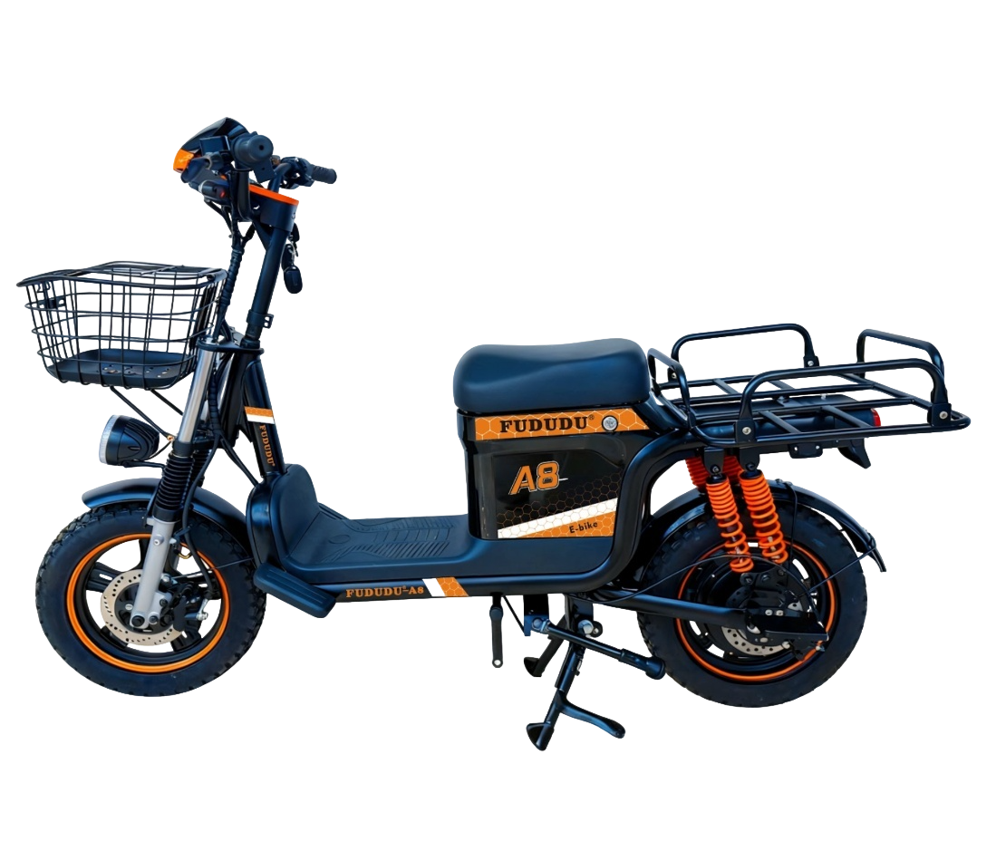 Электровелосипед FUDUDU A8 60V70Ah выполнен на стальной раме, способной выдерживать экстремальную нагрузку до 300 кг, что делает его незаменимым помощником для коммерческой доставки и перевозки тяжелых грузов. Пассивный вес устройства составляет 90 кг, что обеспечивает отличную устойчивость на дороге и уверенное поведение даже при полной загрузке. Передняя стальная корзина позволяет удобно размещать сумки, покупки или другие грузы без дополнительных аксессуаров.
