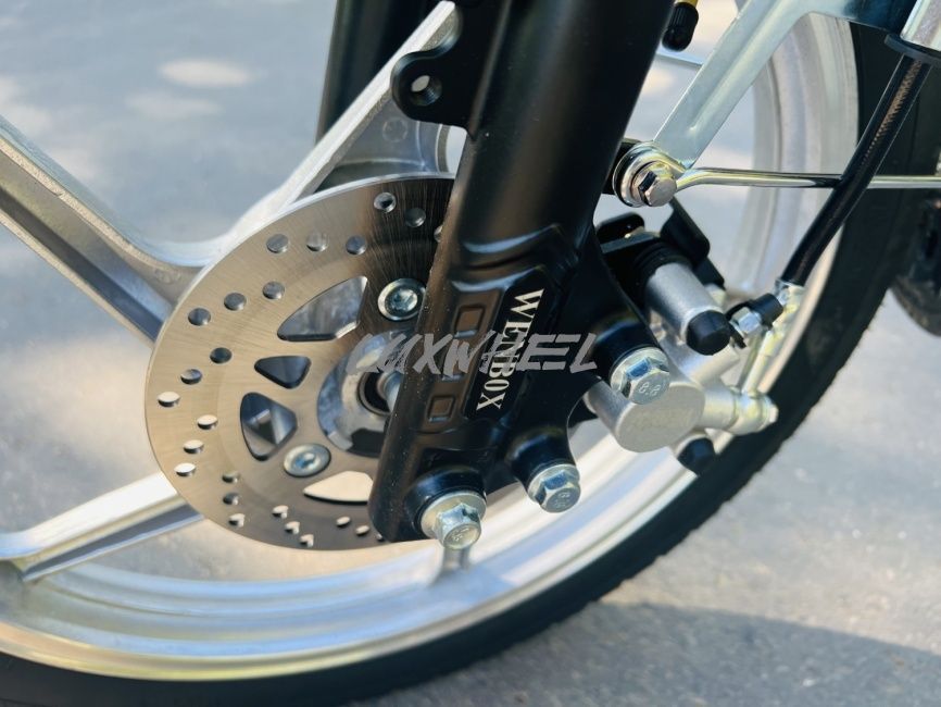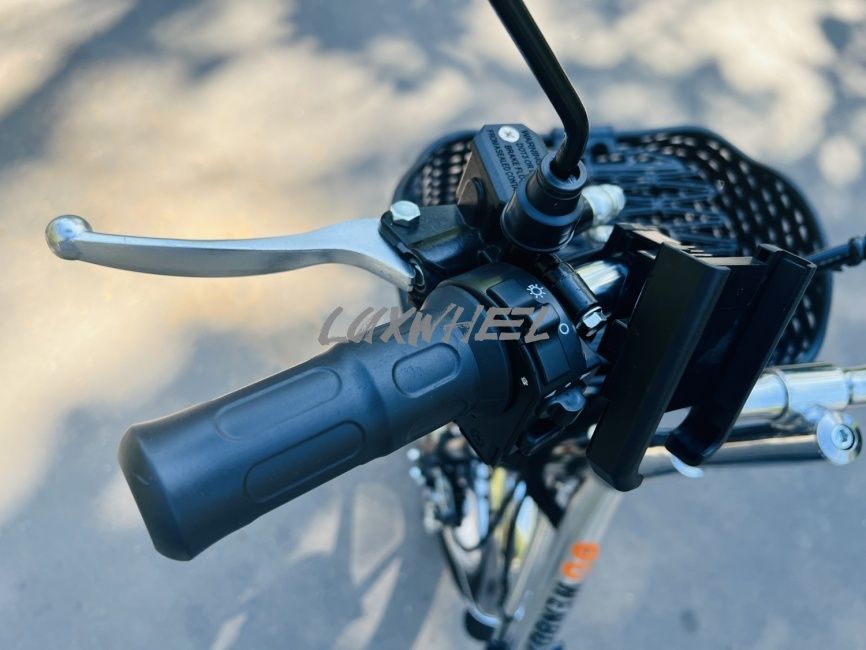 Передняя амортизационная вилка смягчает неровности на дороге, обеспечивая комфортную езду.