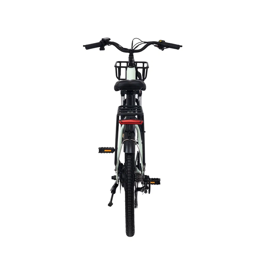 Электровелосипед Yokamura CITY имеет легкую и прочную алюминиевую раму, которая обеспечивает устойчивость и надежность во время движения. Широкие покрышки обеспечивают отличное сцепление с дорогой и плавное движение, а амортизационная вилка смягчает удары и вибрацию во время поездок.