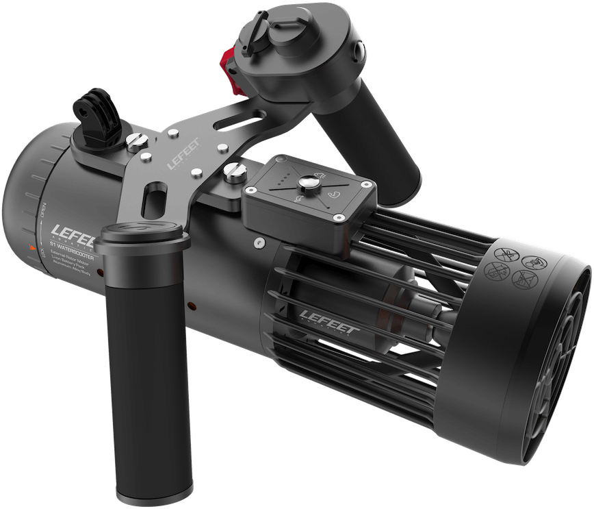 Электрический подводный скутер Lefeet S1 – самое компактное устройство для подводного перемещения. При весе в 2.3 кг, обладает мощным двигателем, способным развивать максимальную скорость под водой 1.5 м/с (5.4 км/ч). Подводный скутер обладает модульной конструкцией, позволяющий соединить два скутер в одно устройство, а так же подключить дополнительные аксессуары.